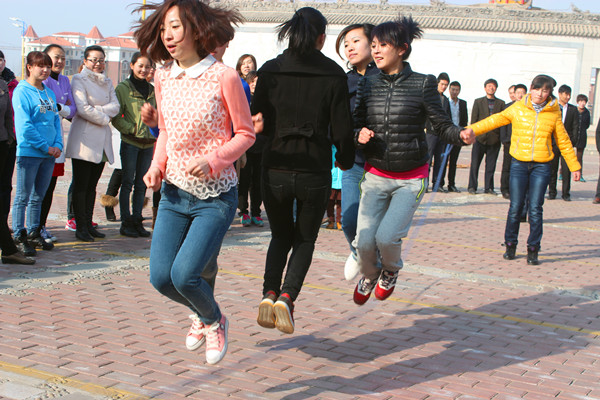 意见意义接力赛分为结伴而行、跳绳、拔河、铁人三项接力、4*50m乒乓接力等项目,角逐分房产公司组、商贸公司组、物业公司组、文化公司组和担保中心组4个小组,每组有参赛选手20人,领队1人 。赛前,各参赛组选手起劲训练,运动筋骨,探讨角逐对策,体现出极高的热情 。角逐历程中,各参赛女员工斗志高昂,纷纷使出看家本事,赢得了在场员工及观赛者的阵阵掌声,角逐推向热潮 。整个角逐精彩纷呈,赛事虽然简朴,却磨练了员工的技巧和耐力,参赛女员工无一怠慢,全力为团队争得赛绩 。一时间,笑声、喊声一直于耳,各人都陶醉在欢喜的气氛之中 。