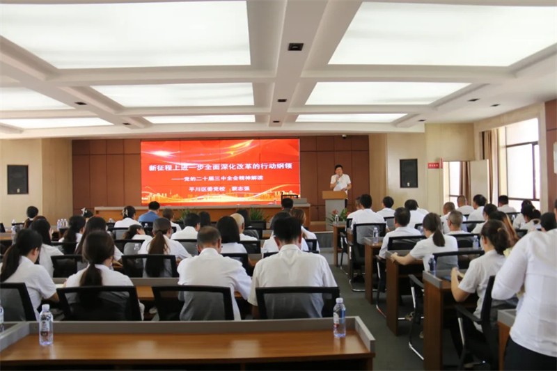 8月30日 ,甘肃3044am永利集团实业投资集团开展二十届三中全会宣讲运动 ,本次运动由集团公司党委书记叶长林主持 ,特邀平川区委党校副校长裴志强为各人深入解读党的二十届三中全会精神 ,裴校长从六个要害方面叙述了刷新开放的深远意义和未来生长偏向。着重强调要以新时代中国特色社会主义头脑为引领 ,鼎力大举深化各领域刷新 ,推动高质量生长。